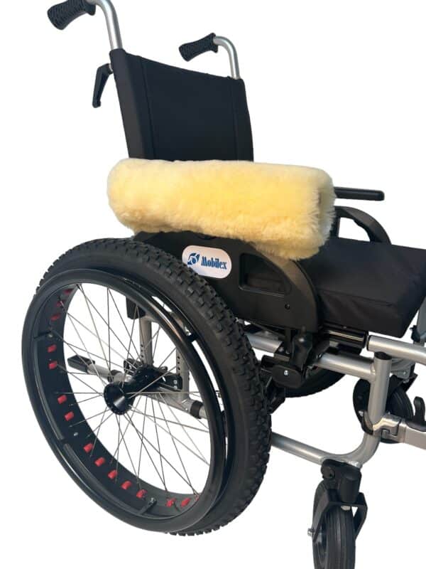 Er dine armstøtter på kørestolen ukomfortable? Køb dit luksus armlæns-polstring her. Polstring til dit armlæn (kørestol) i ægte lammeskindspels. Denne bløde polstring forebygger ømme underarme og hjælper med at holde dine underarme varme i de kolde månede